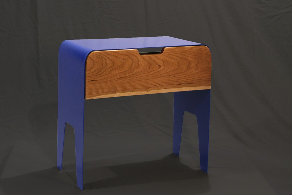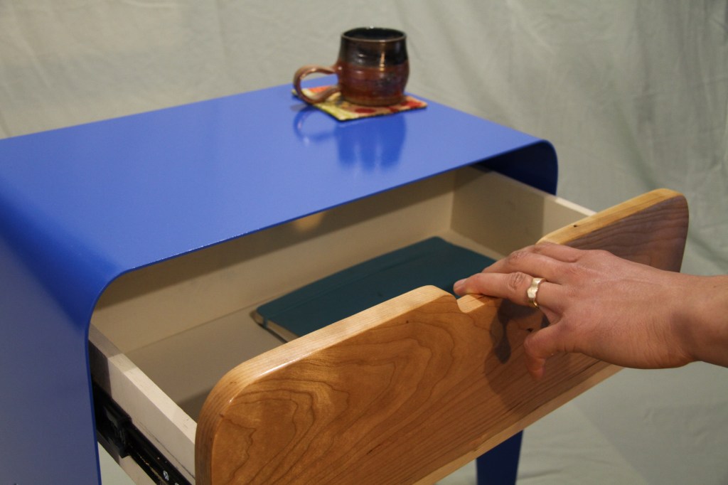 formed steel side table with cherry drawer – SOLD